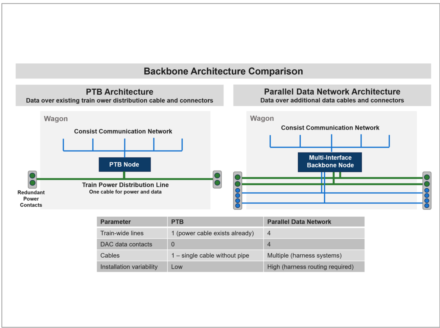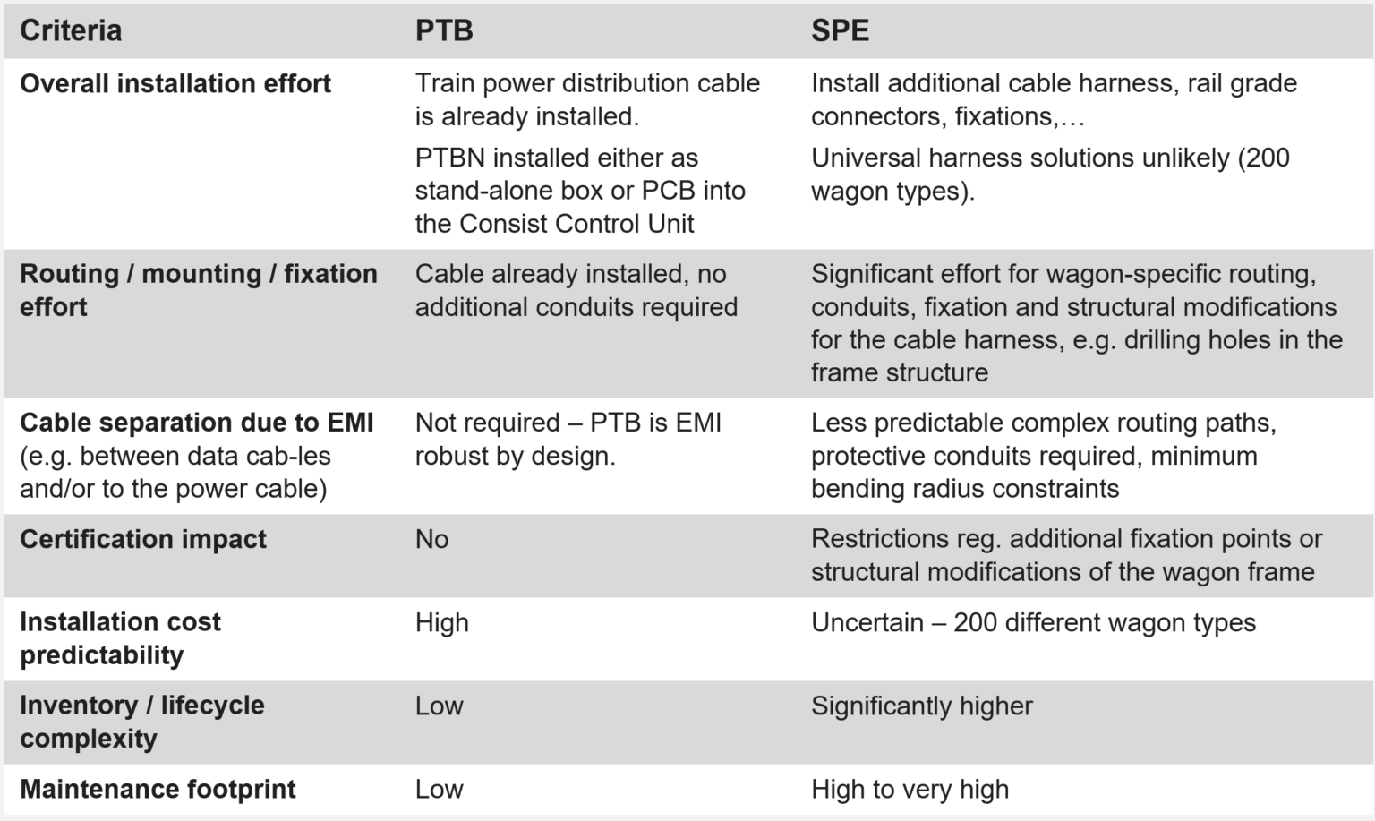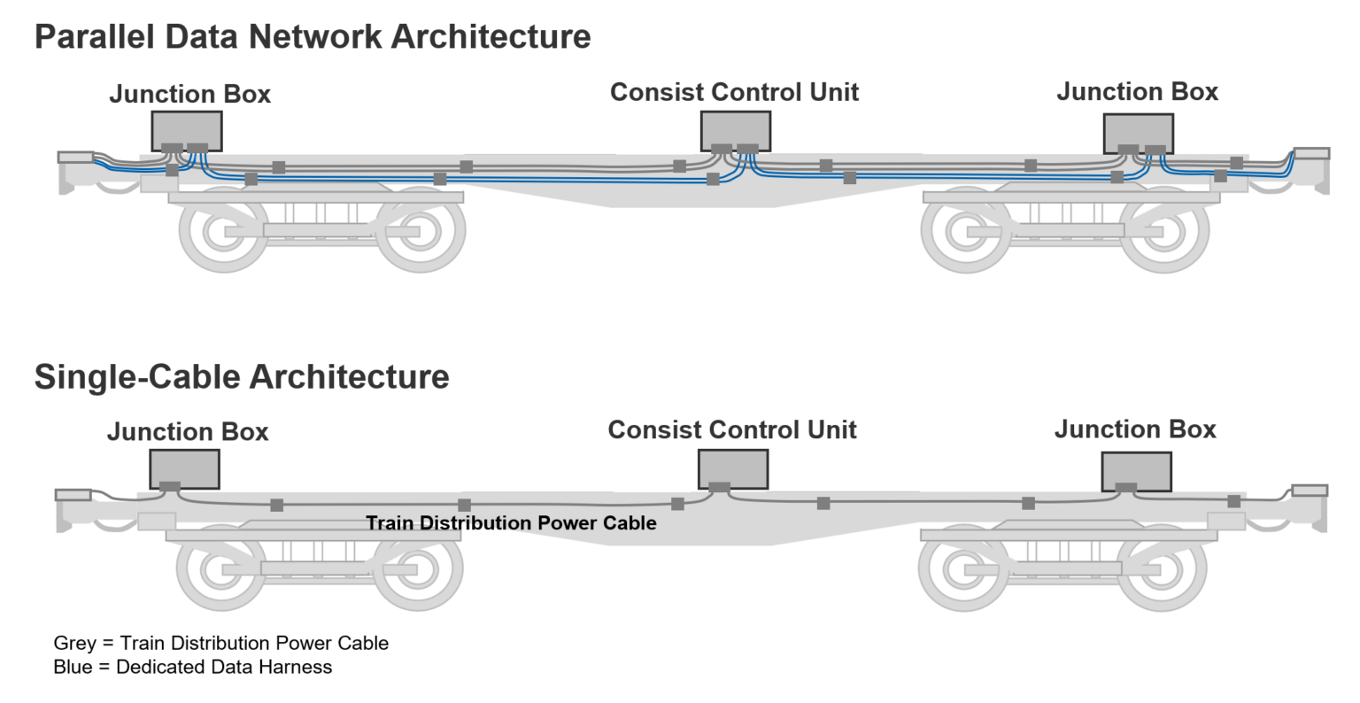 SPE network parallel to the power cable installed within the limited space of freight wagons increases wagon-specific routing variation, engineering effort and inventory complexity.
