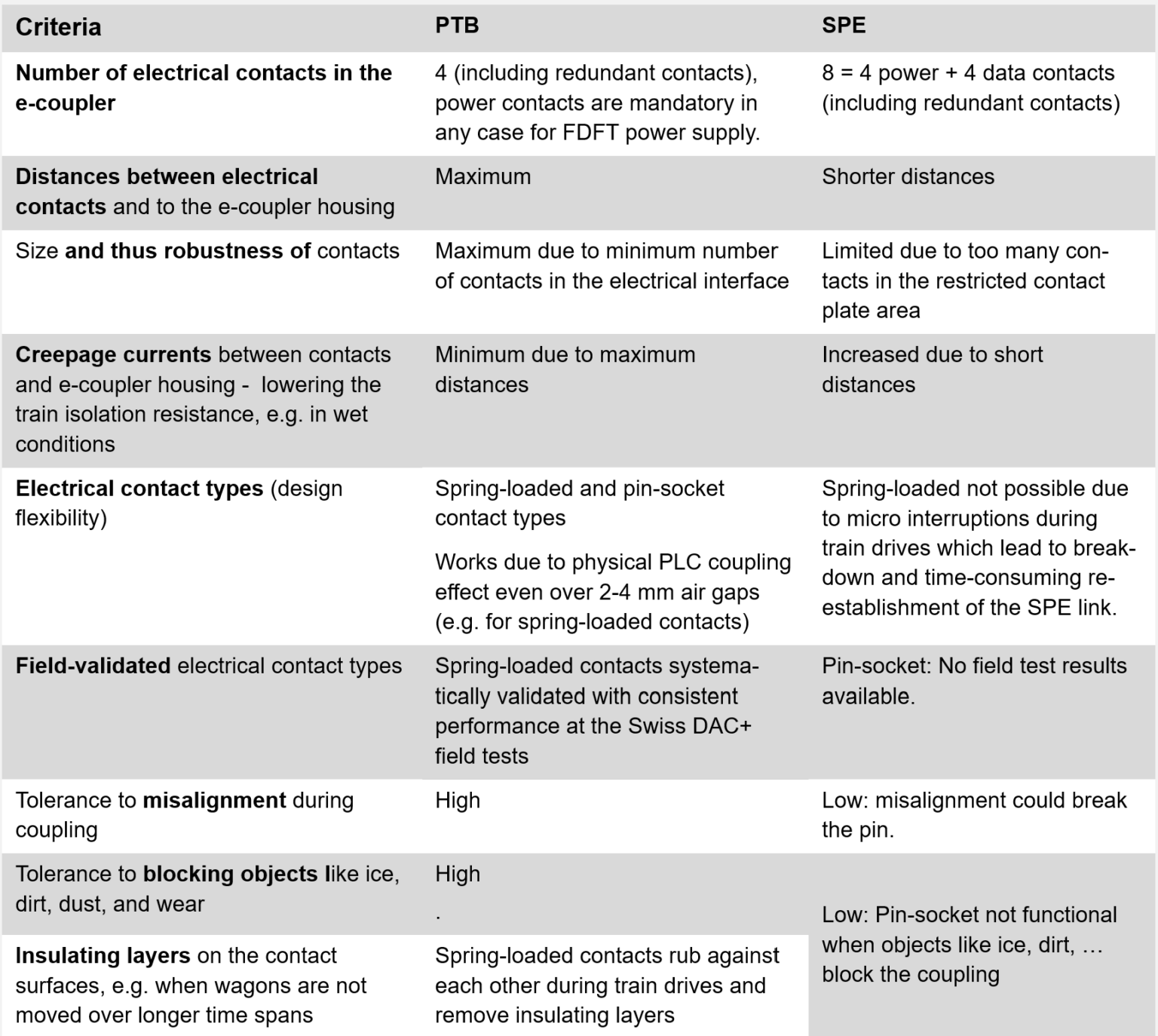 Implication: Additional SPE electrical contacts and restriction to only the pin-socket contact type introduce additional failure sources.